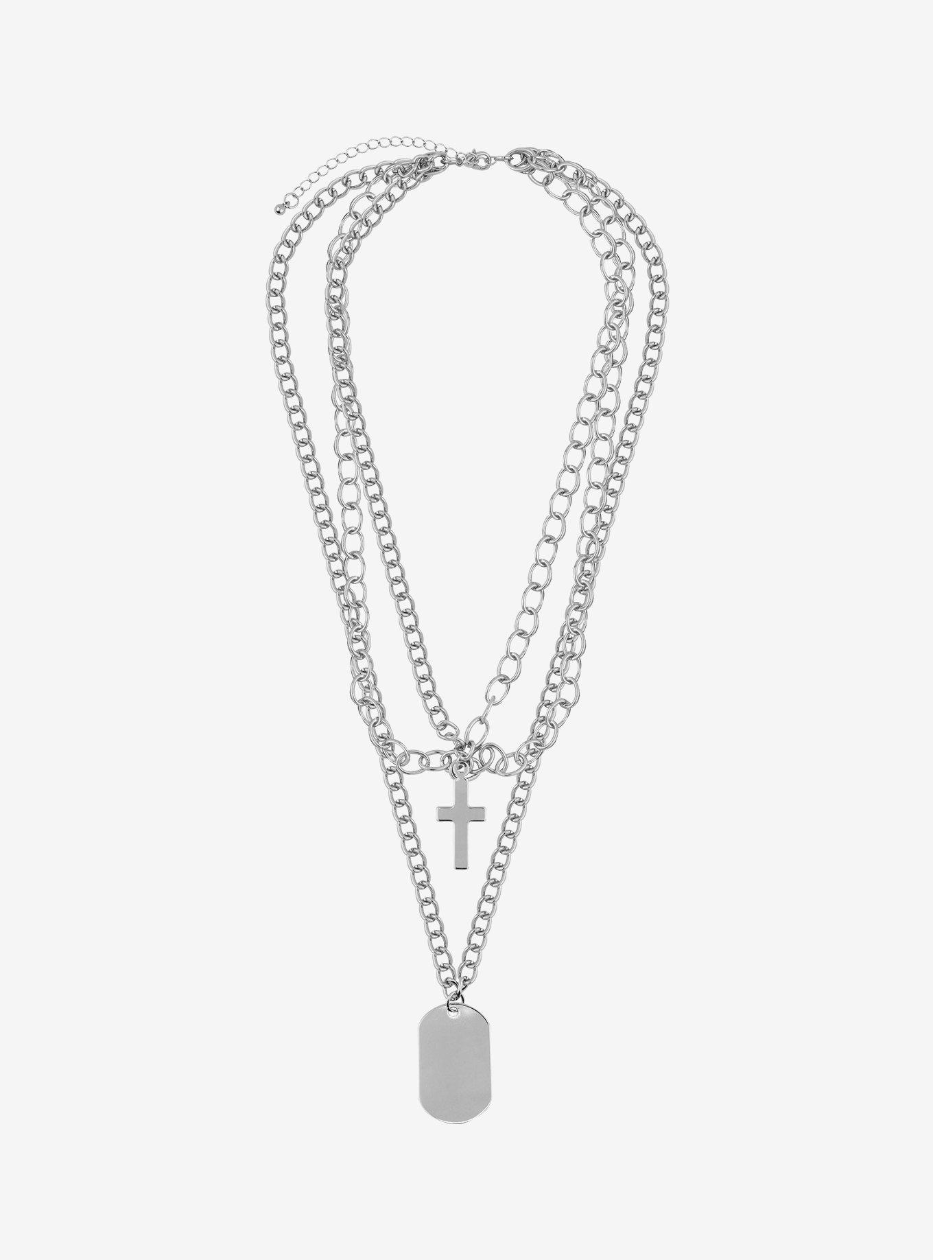Dog Tag Cross Chain Necklace Set Hot Topic